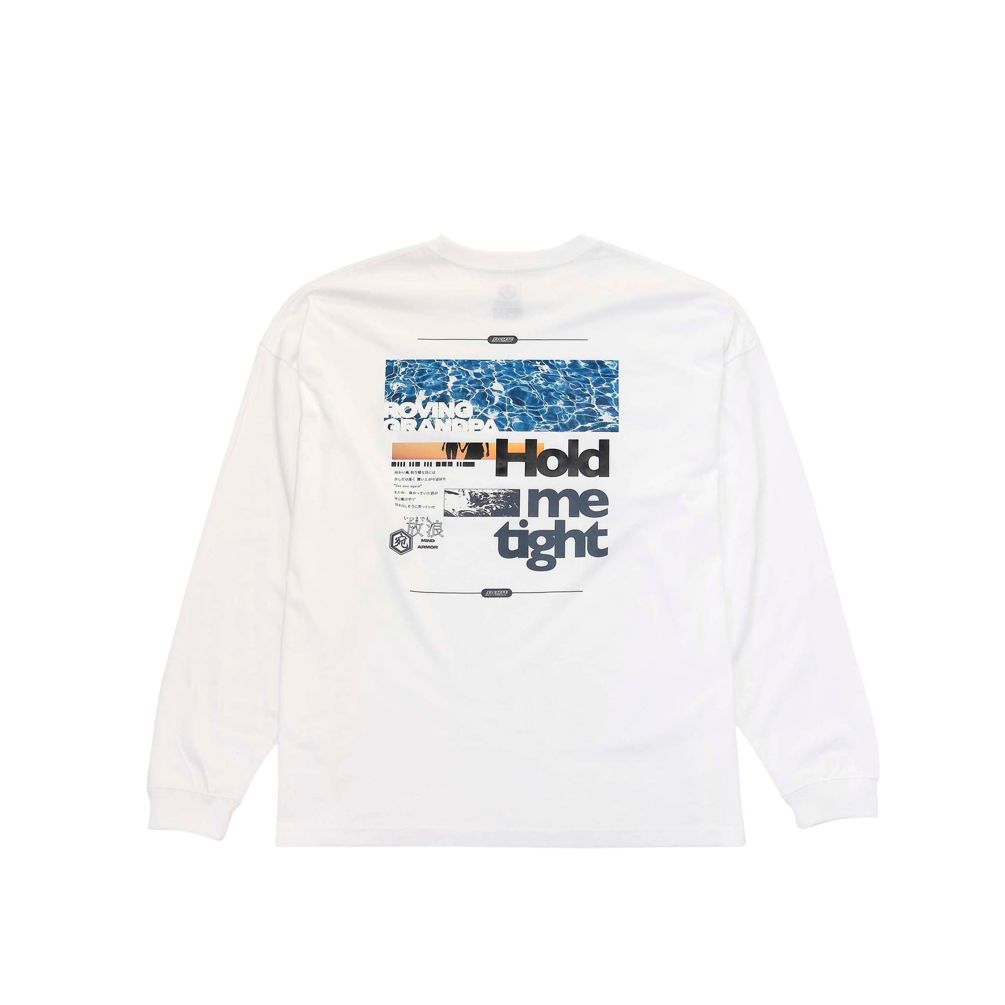 コラボ商品のタイトルでもある「Hold me tight Long Sleeve」はROVING GRANDPAの楽曲でもある「Hold me tight」からとられた。この楽曲は、SHABA・ROVING GRANDPAでギターを掛け持つアーサーの存在で両バンドの不仲説が挙がっていた頃、SHABAのVo.である航佑が「この曲好っきゃねんなぁ」と話しかけ、全くもって不仲ではなかったことが実証された思い出の楽曲でもある。「Hold me tight 阿保うみたいに愛せたモノだけ抱きしめていたい」そんな想い/想い出のこもった武装服をSANAGARAから。好きと感じるもの、愛せたもの。そう感じることができる感情とそれそのものをぎゅっと抱きしめて、離さないように。
