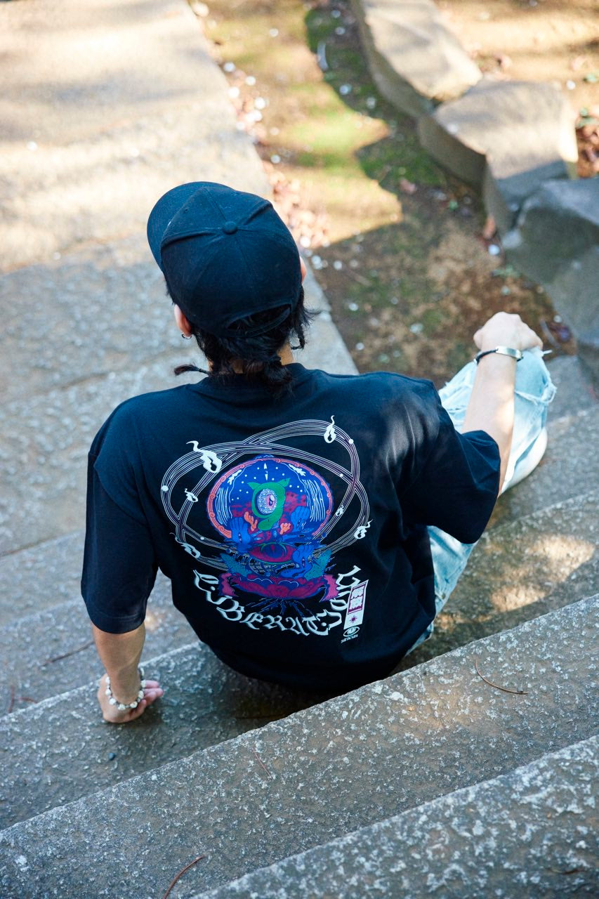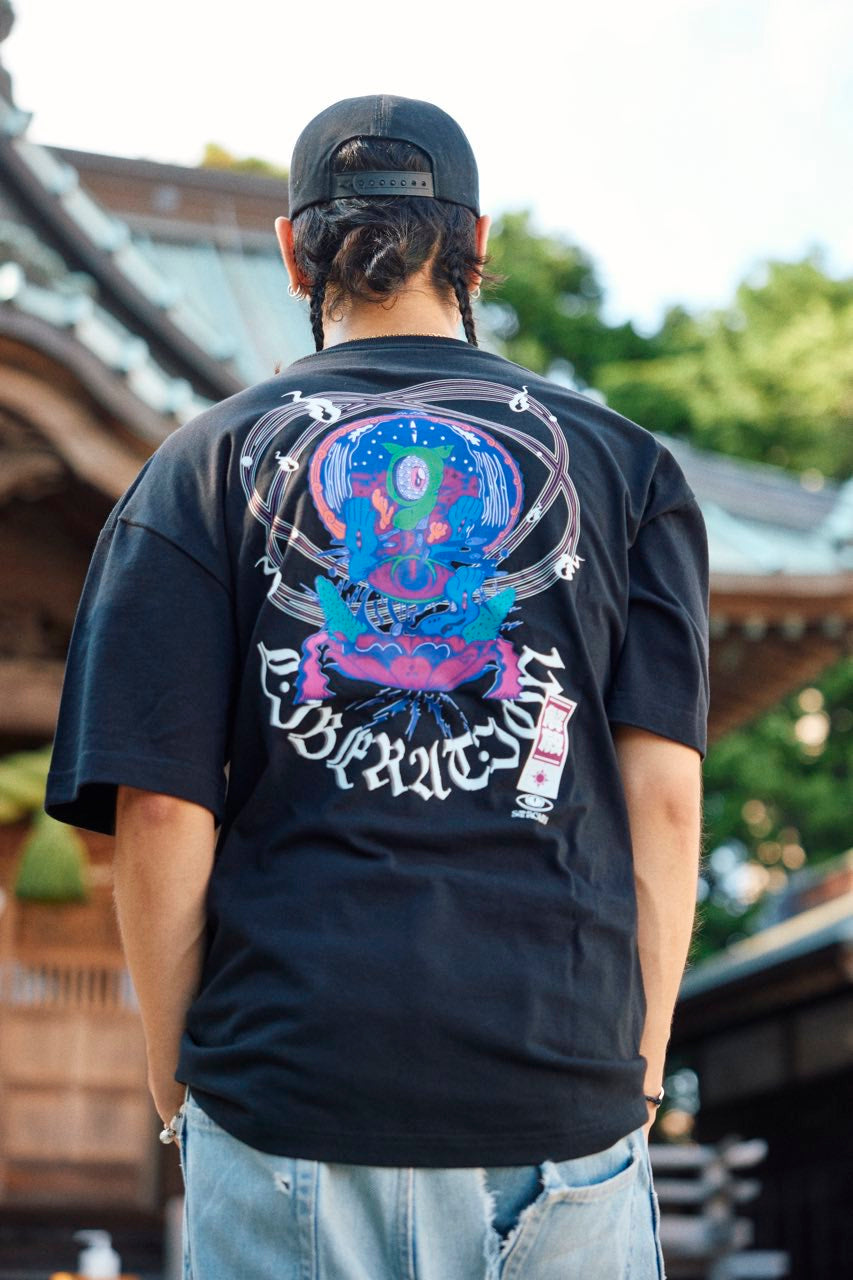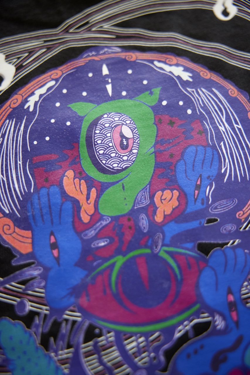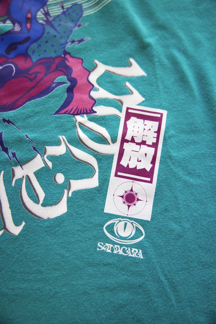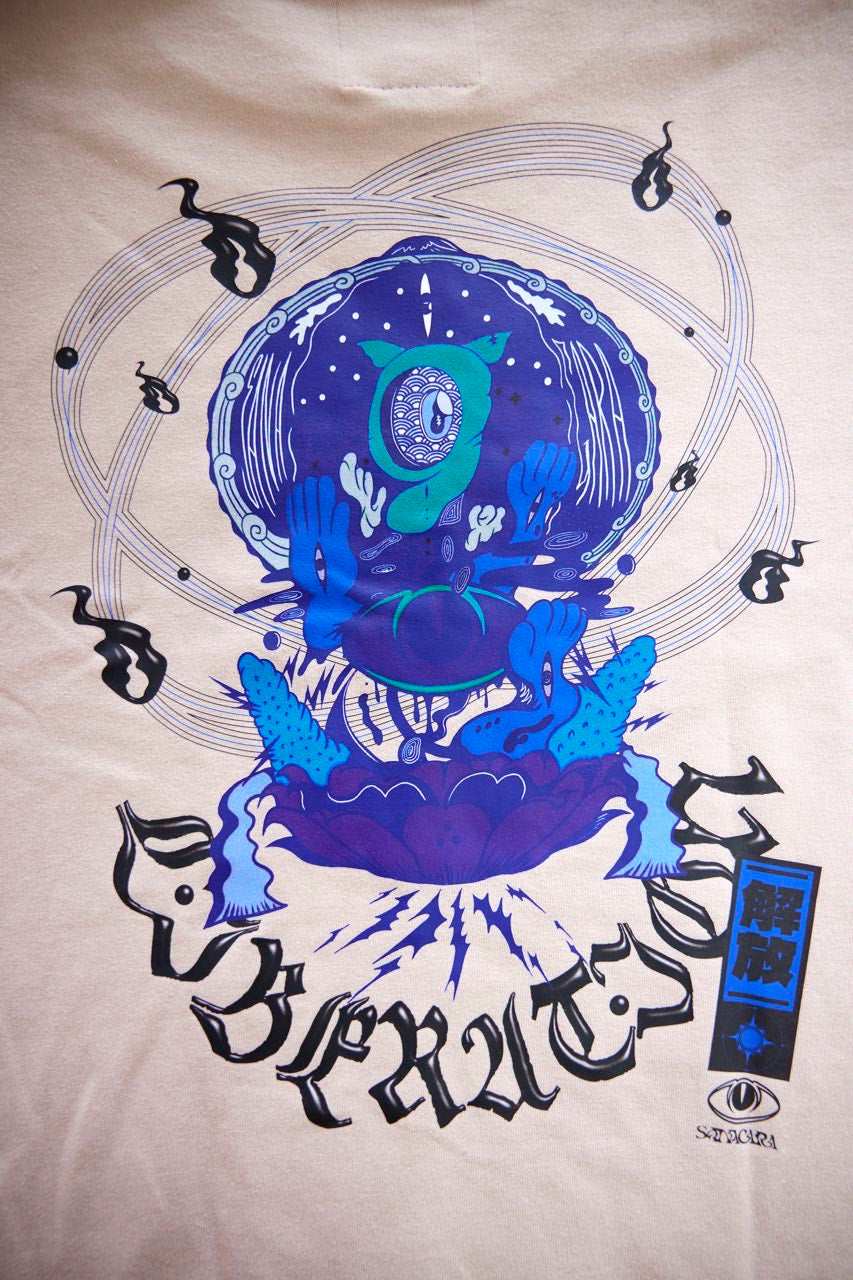 サイケデリックイラストレーター奴隷ちゃん(Slave-Chang)とSANAGARA APPARELコラボ商品が新登場!DETOX知弥の加筆によって完成した「Slave-liberation Tシャツ」は何の為に生まれて、何の為に生きるのかわからなくってしまった現代の迷える魂を解放するべく製作されました。SANAGARA APPAREL NEWロゴの目のモチーフとなった「むにむさん」を奴隷ちゃんテイストで描き上げ、輪廻転生する魂達を知弥が装飾しました。死者の魂が還る日本の夏の日、道標としてご武装ください。