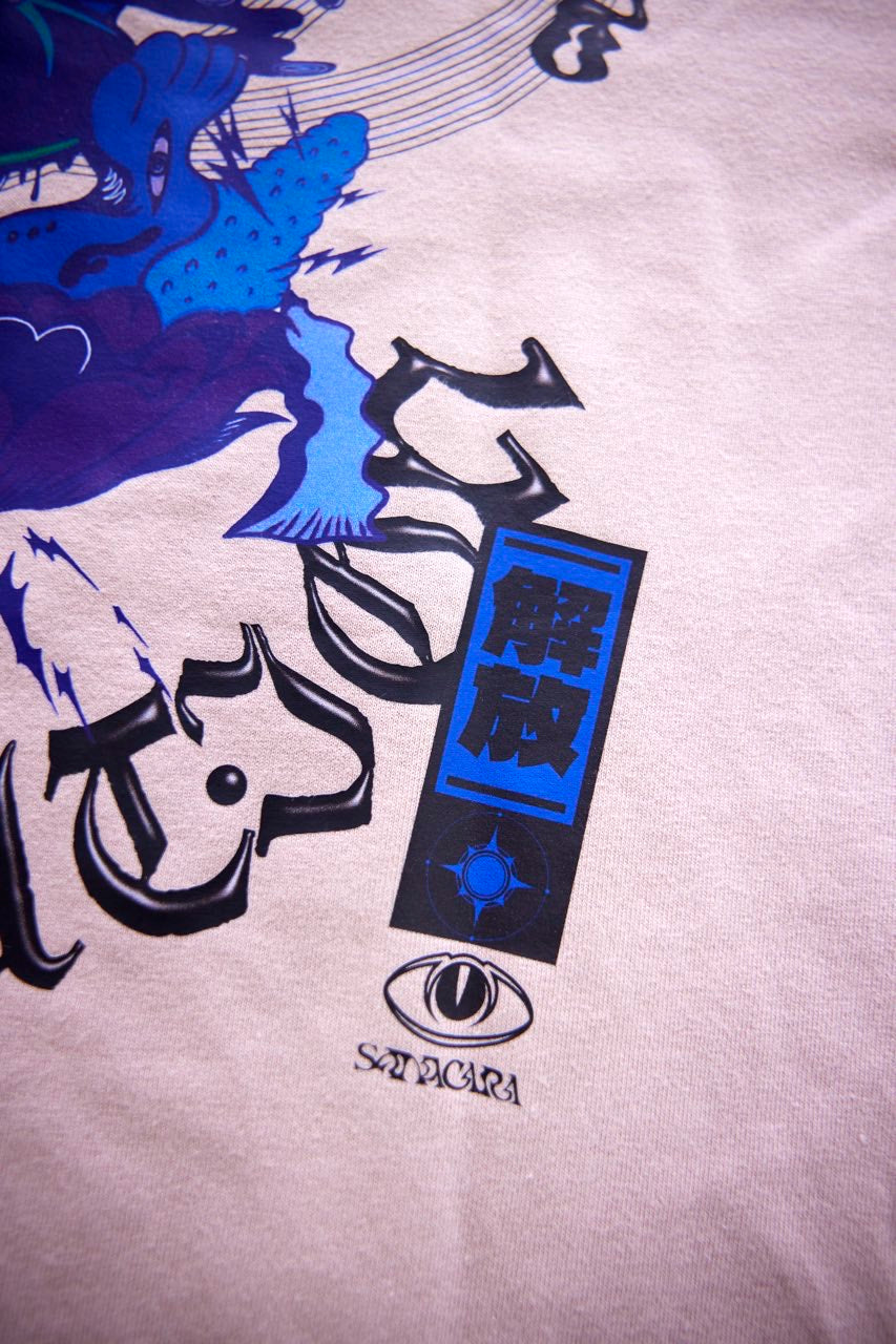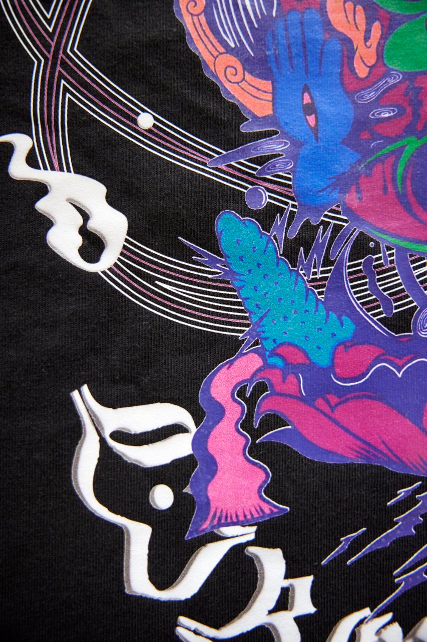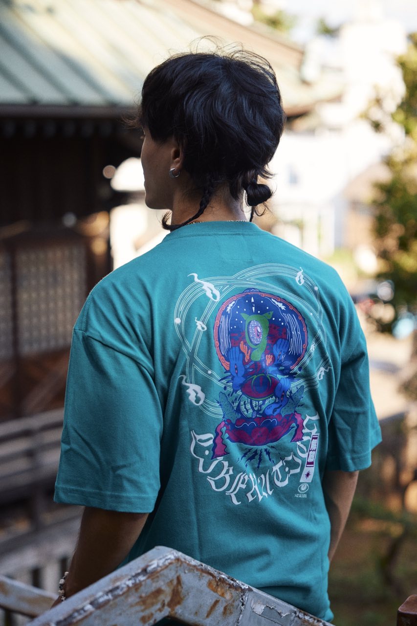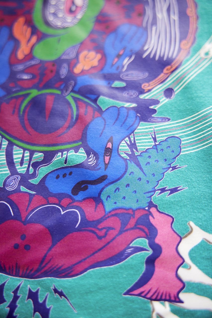 サイケデリックイラストレーター奴隷ちゃん(Slave-Chang)とSANAGARA APPARELコラボ商品が新登場!DETOX知弥の加筆によって完成した「Slave-liberation Tシャツ」は何の為に生まれて、何の為に生きるのかわからなくってしまった現代の迷える魂を解放するべく製作されました。SANAGARA APPAREL NEWロゴの目のモチーフとなった「むにむさん」を奴隷ちゃんテイストで描き上げ、輪廻転生する魂達を知弥が装飾しました。死者の魂が還る日本の夏の日、道標としてご武装ください。