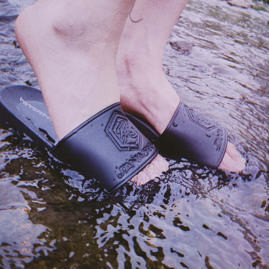 アクティブシーンでも大活躍のサンダルがシックなデザインで今年も登場! 「まとわりつく砂浜が、足先にそっと隠したはずの火薬を打ち上げた。」