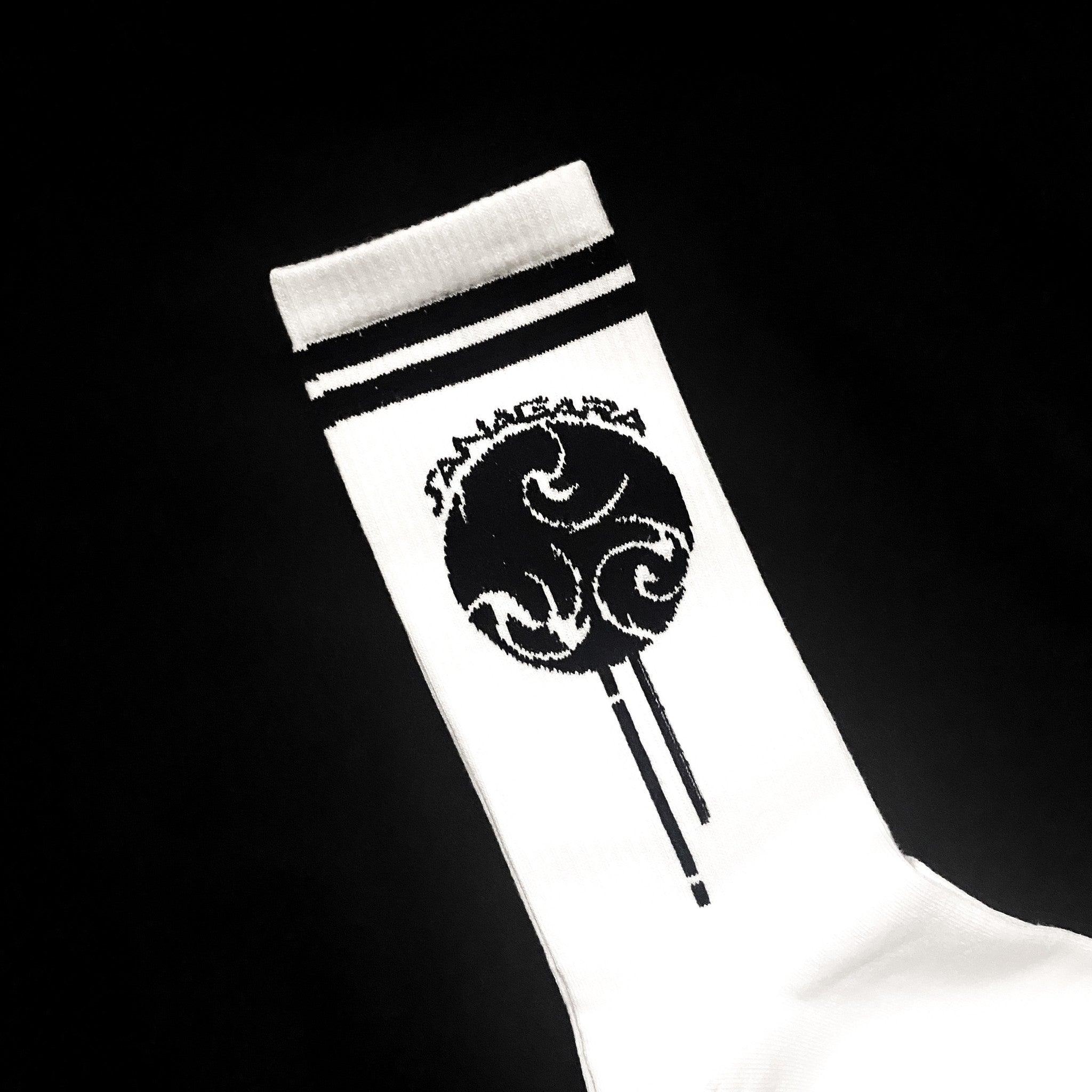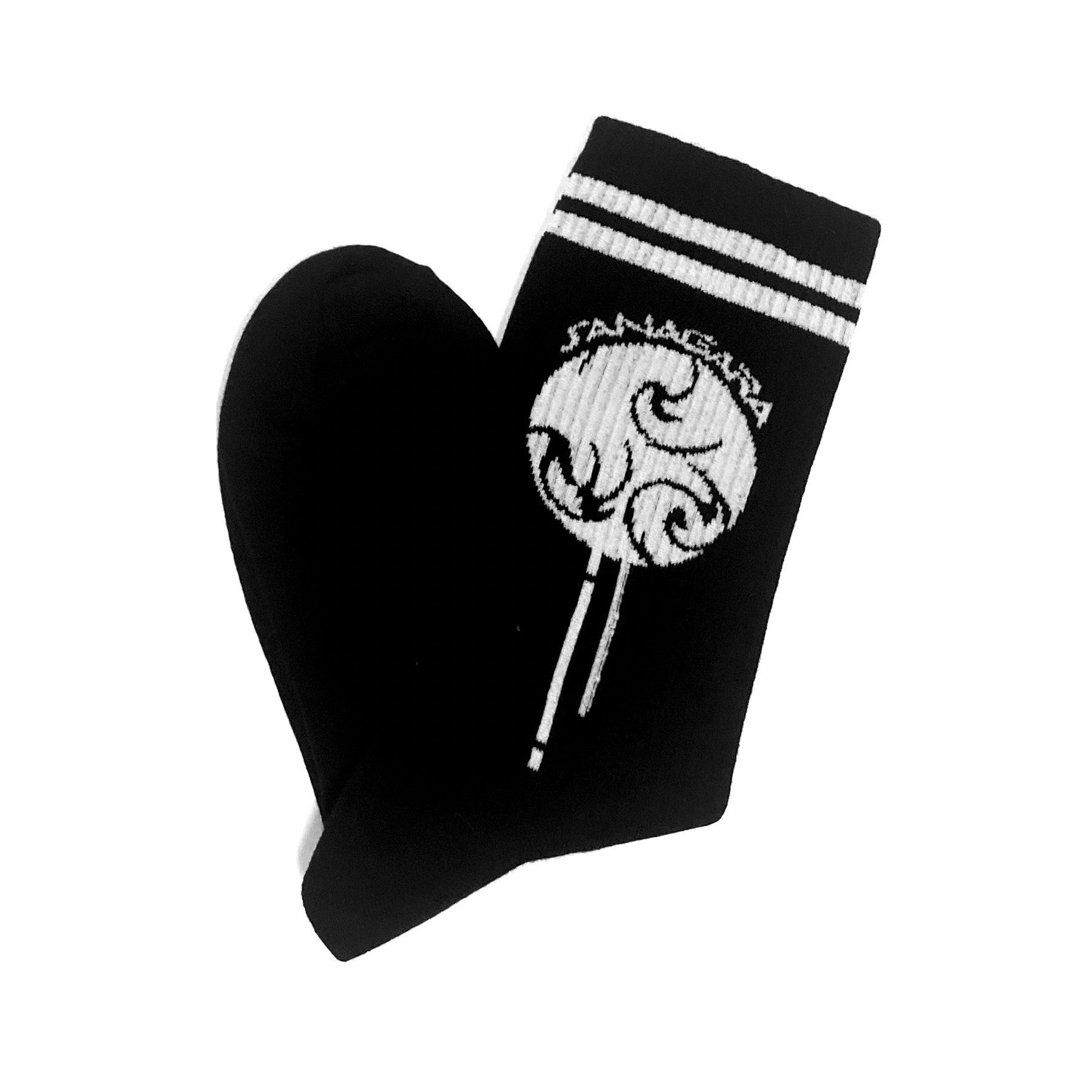 待望のSANAGARA SOCKSが登場! 万能なミドルソックスでスニーカーにもサンダルにも合うデザインです。「裸足のつま先に火をつけて」
