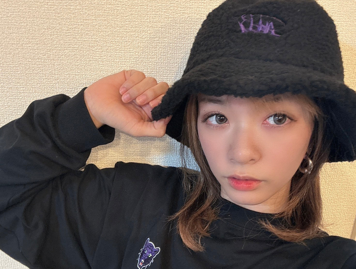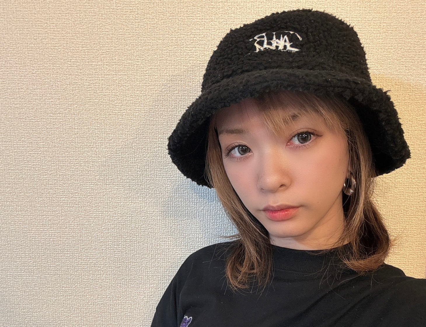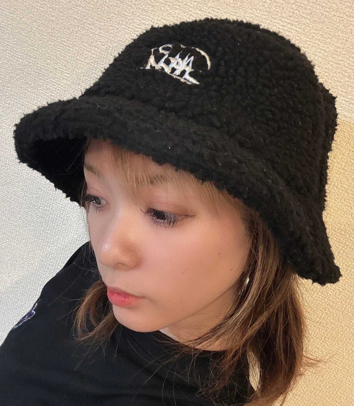 叫美からもふもふ仕様のバケットハットが登場。mayu直筆「SAKEBI」文字を刺繍化、黒のもふもふに白・紫の糸で2色展開。パッと明るく白ver. / ちょっぴりクールに紫ver.からお選びください。寒い冬にもおしゃれに温かくお楽しみいただけます。
