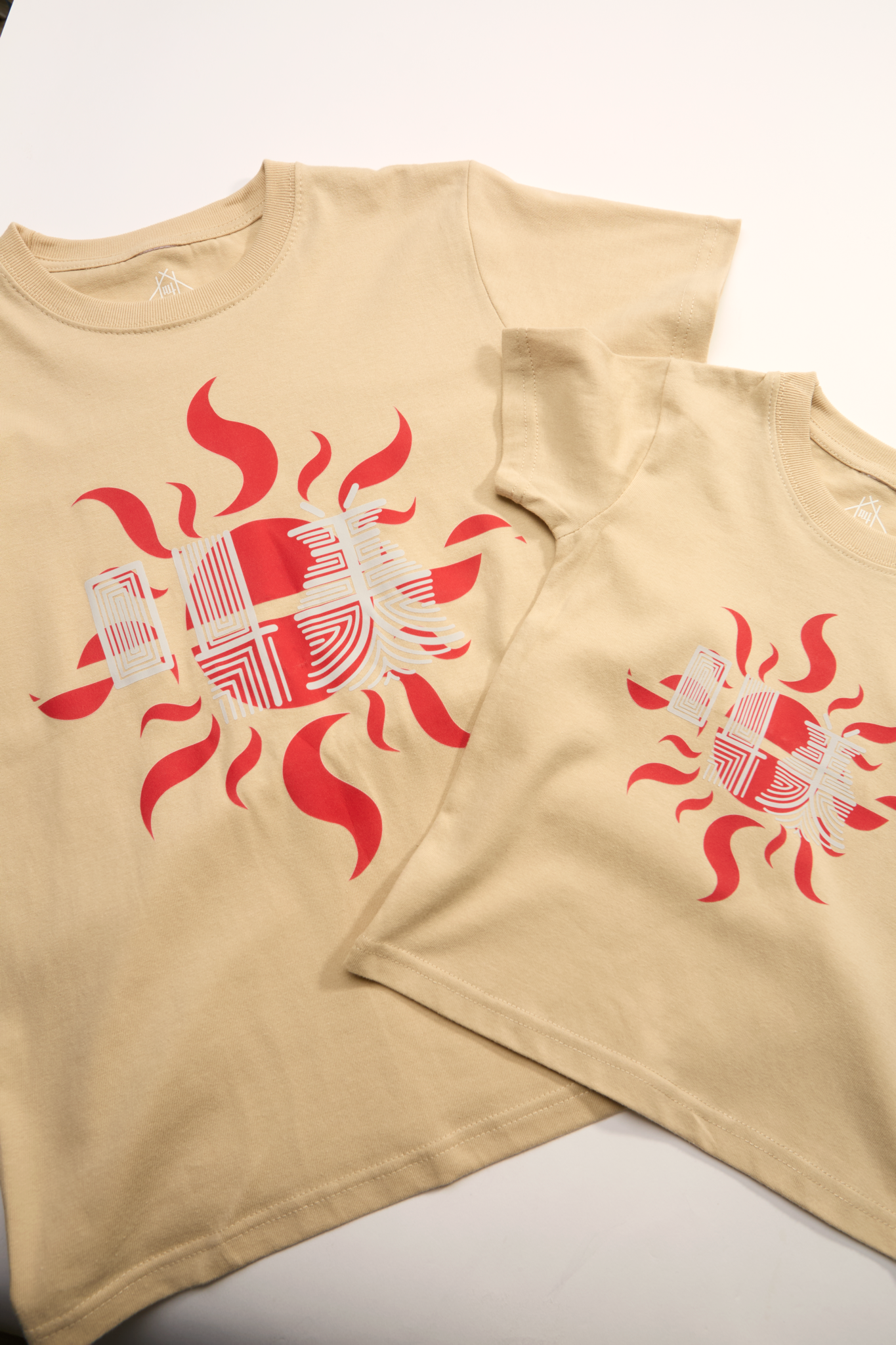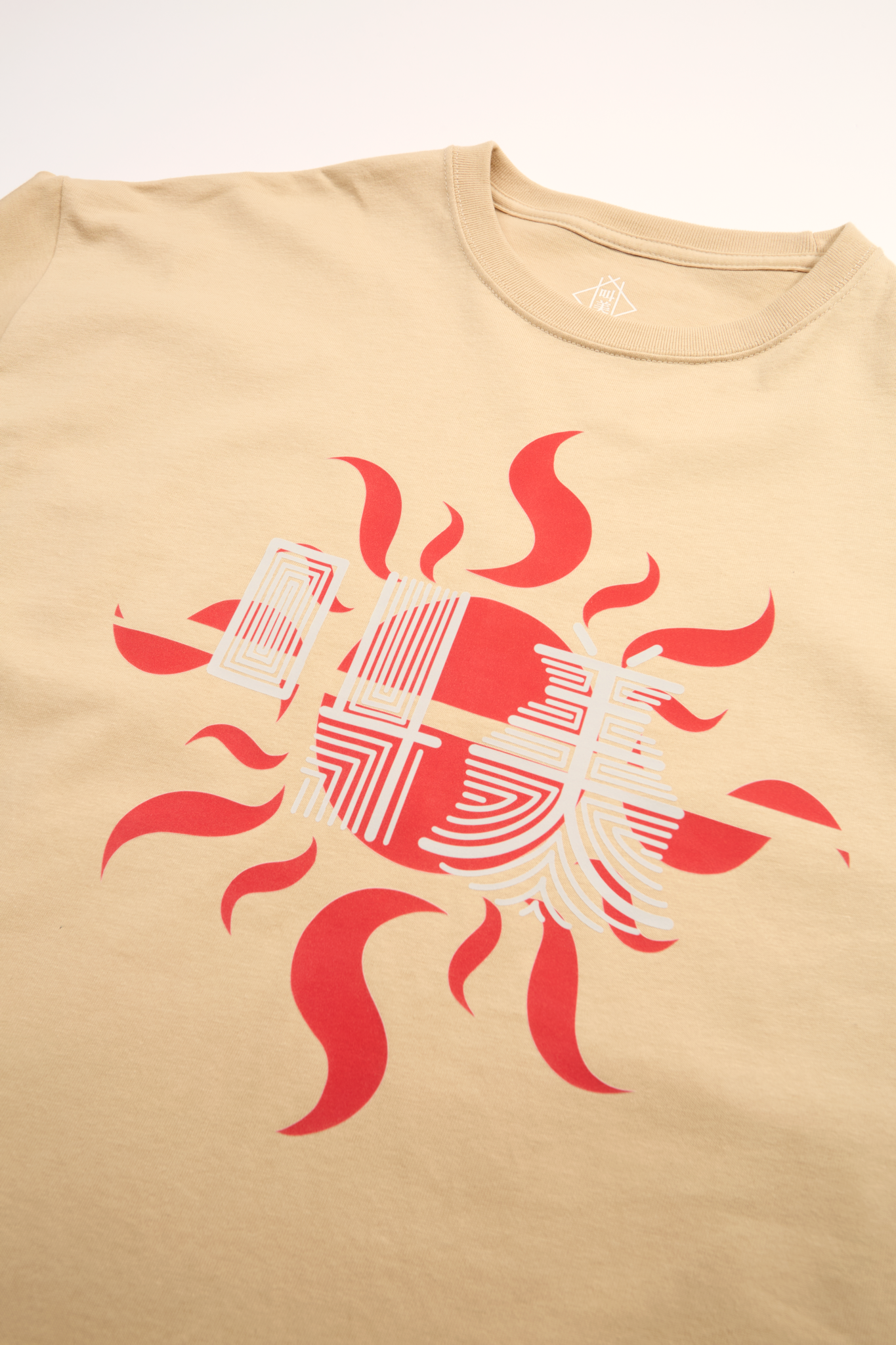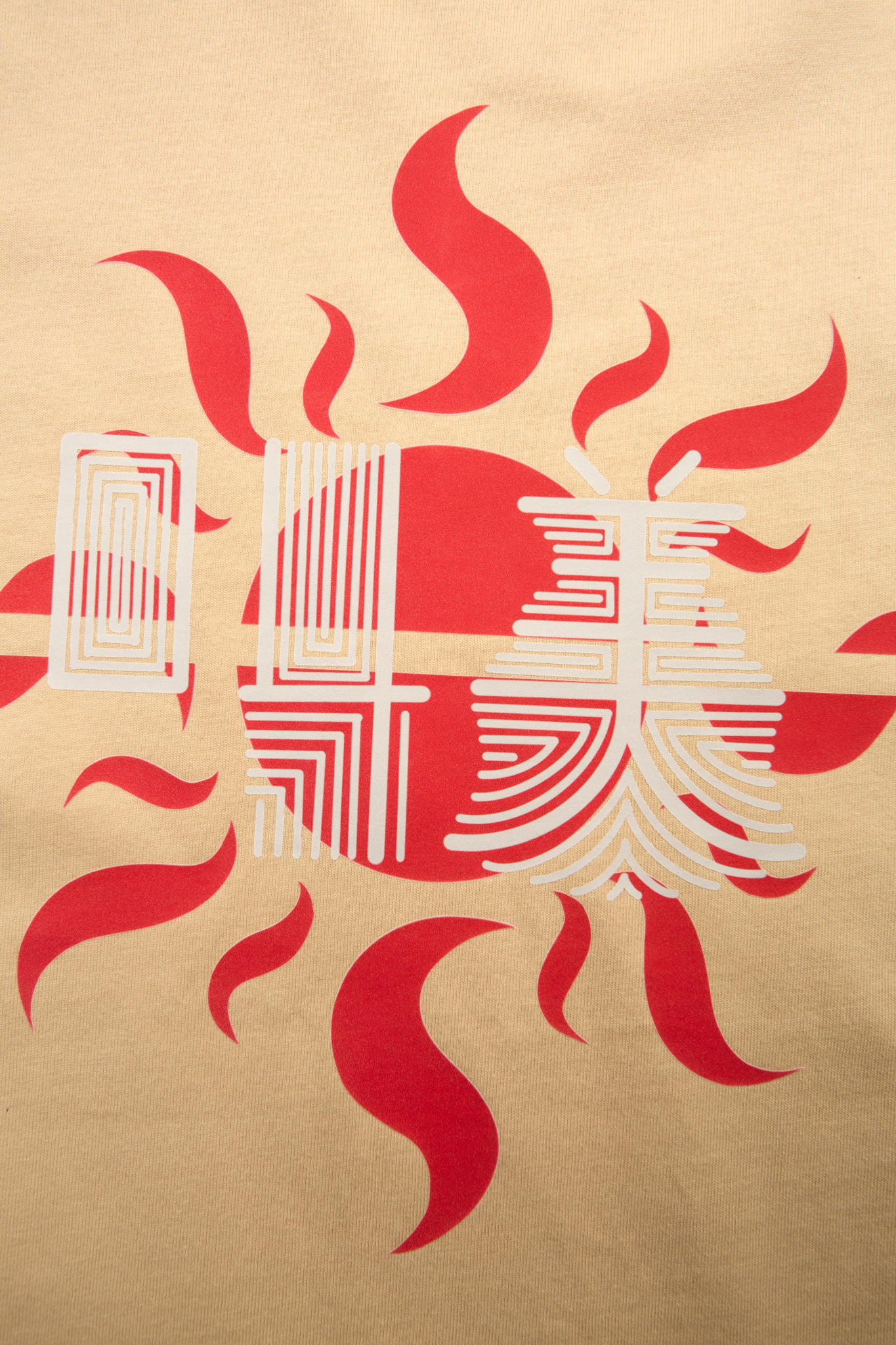 共鳴 batT-shirtでデザインした太陽ロゴを夏にも身にまといたい思いからTシャツも発案しました! このデザインTシャツでもいいんじゃない!?ってプロデューサーゆっくんともなって、もう共鳴がうまれていた1枚