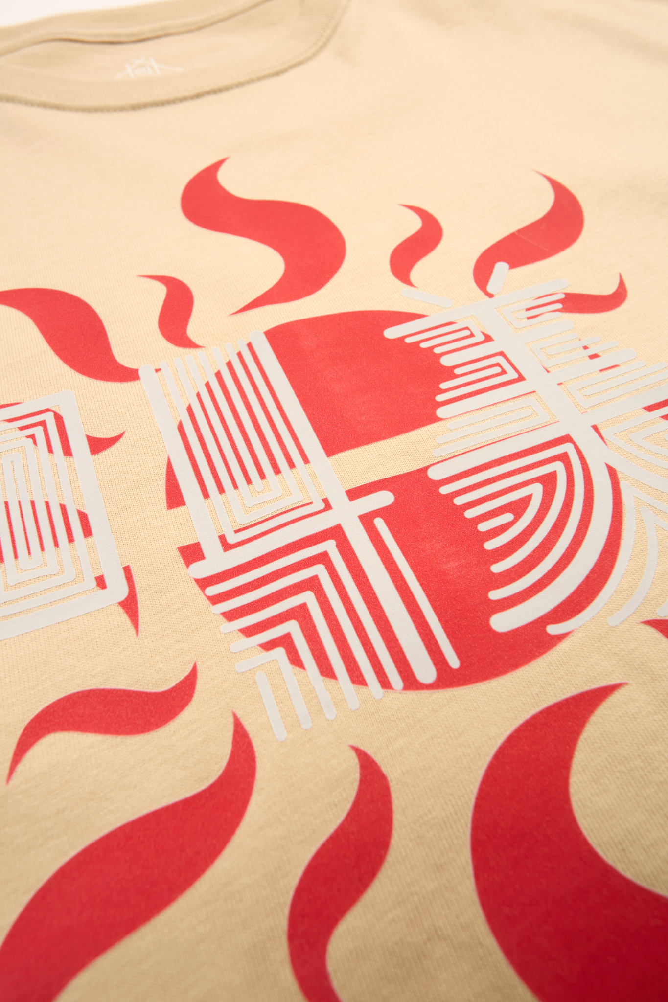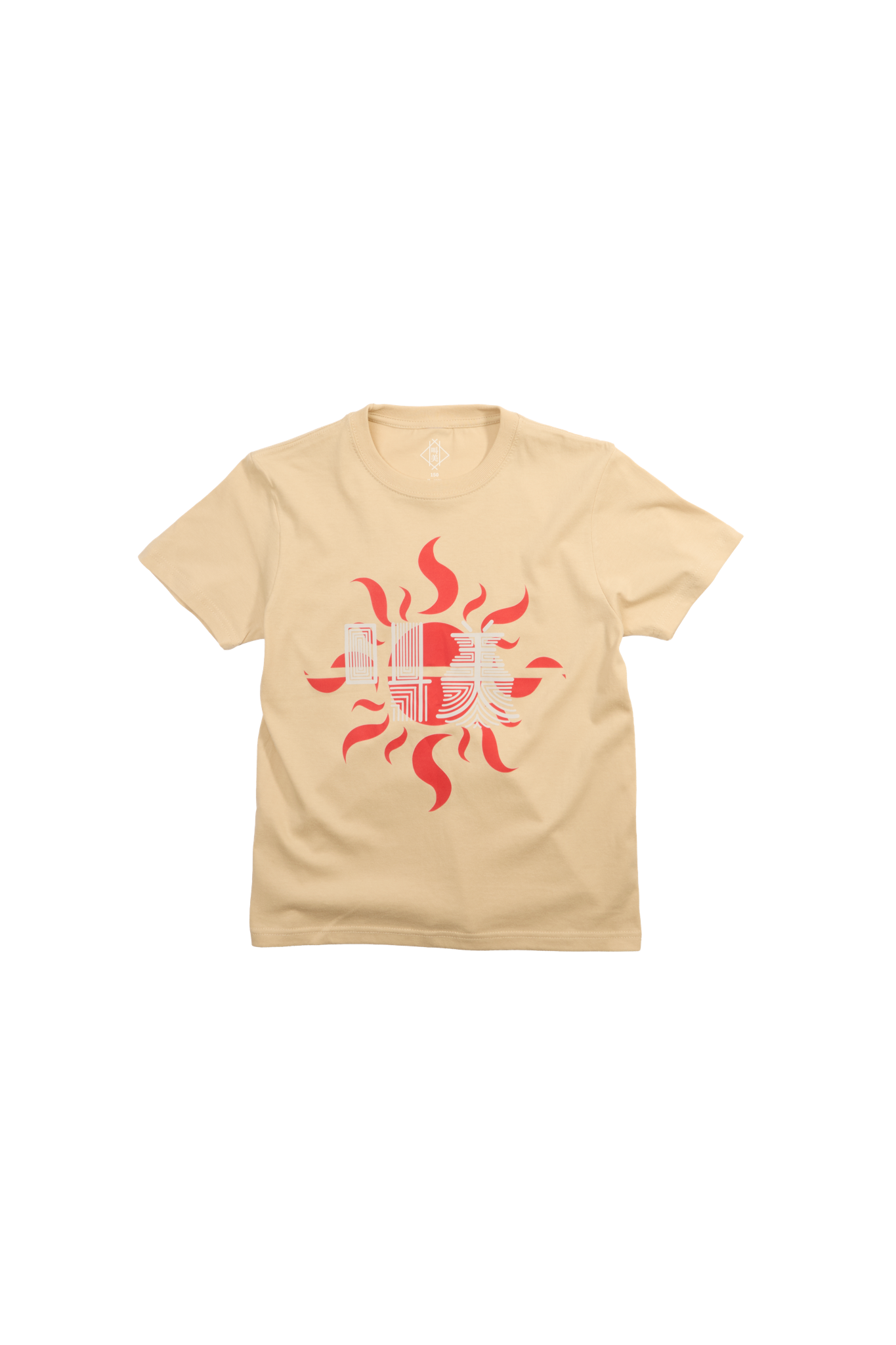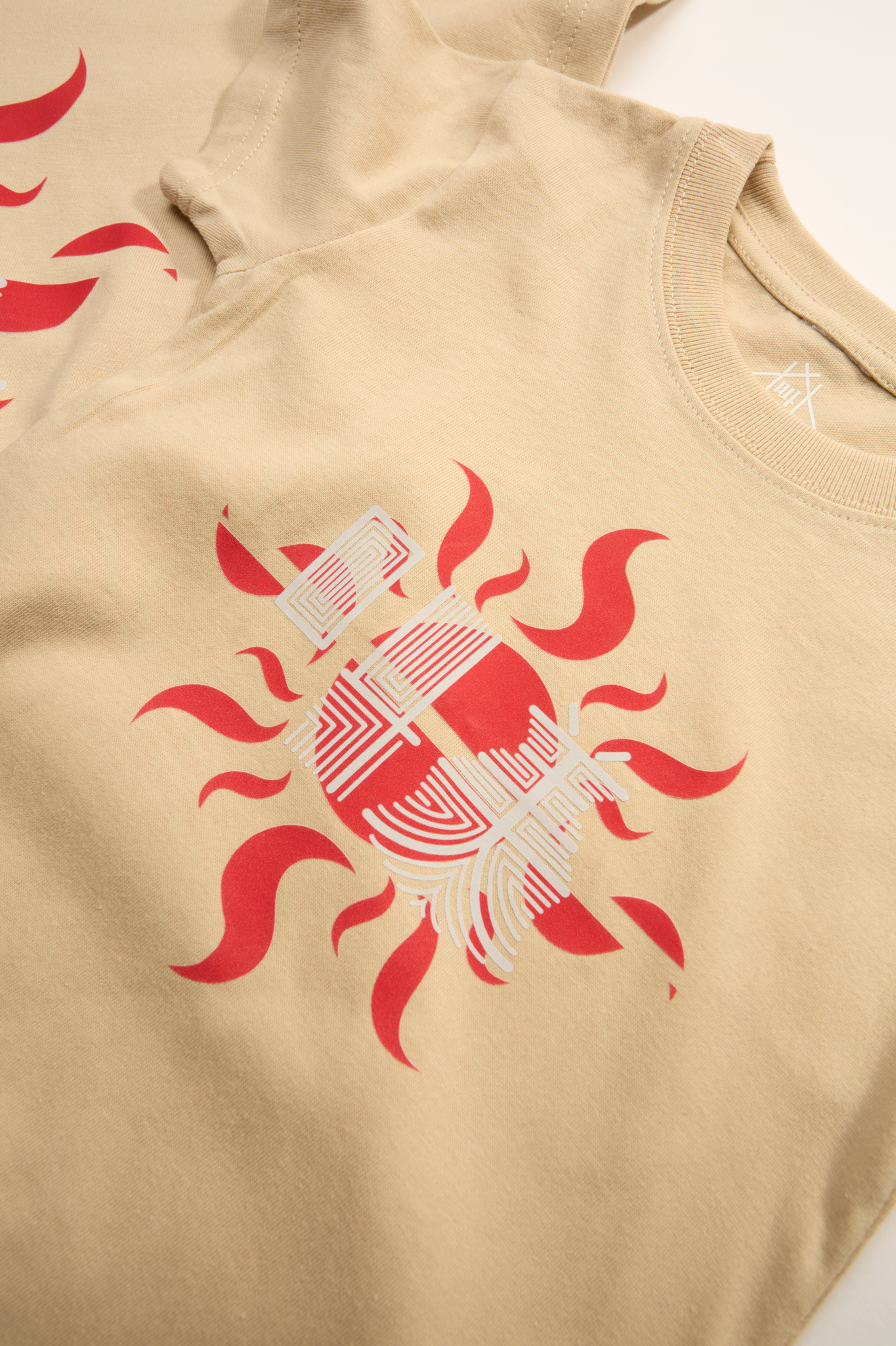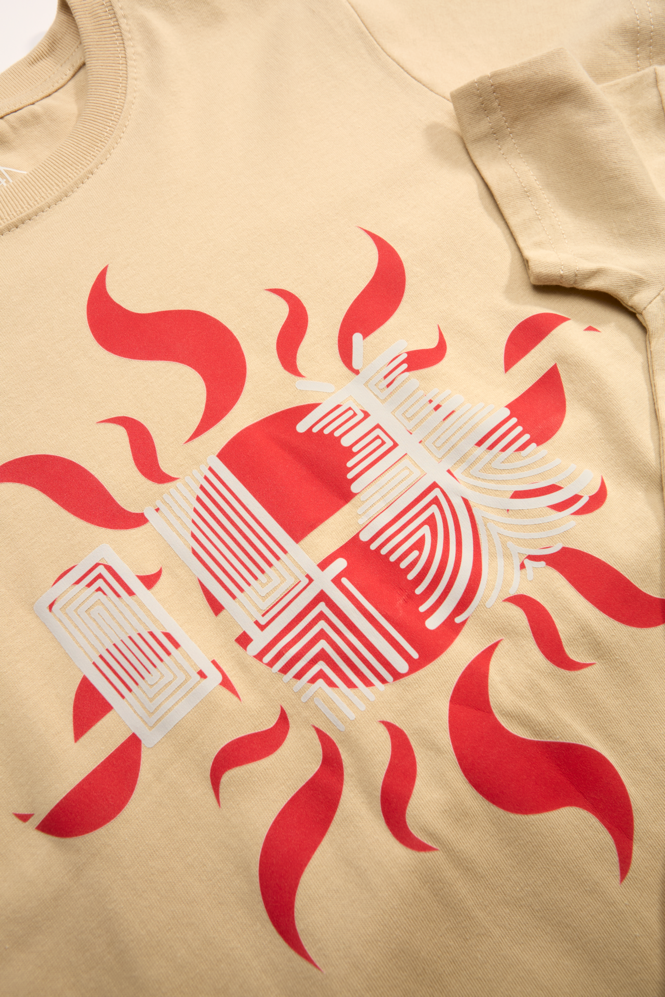 共鳴 batT-shirtでデザインした太陽ロゴを夏にも身にまといたい思いからTシャツも発案しました! このデザインTシャツでもいいんじゃない!?ってプロデューサーゆっくんともなって、もう共鳴がうまれていた1枚
