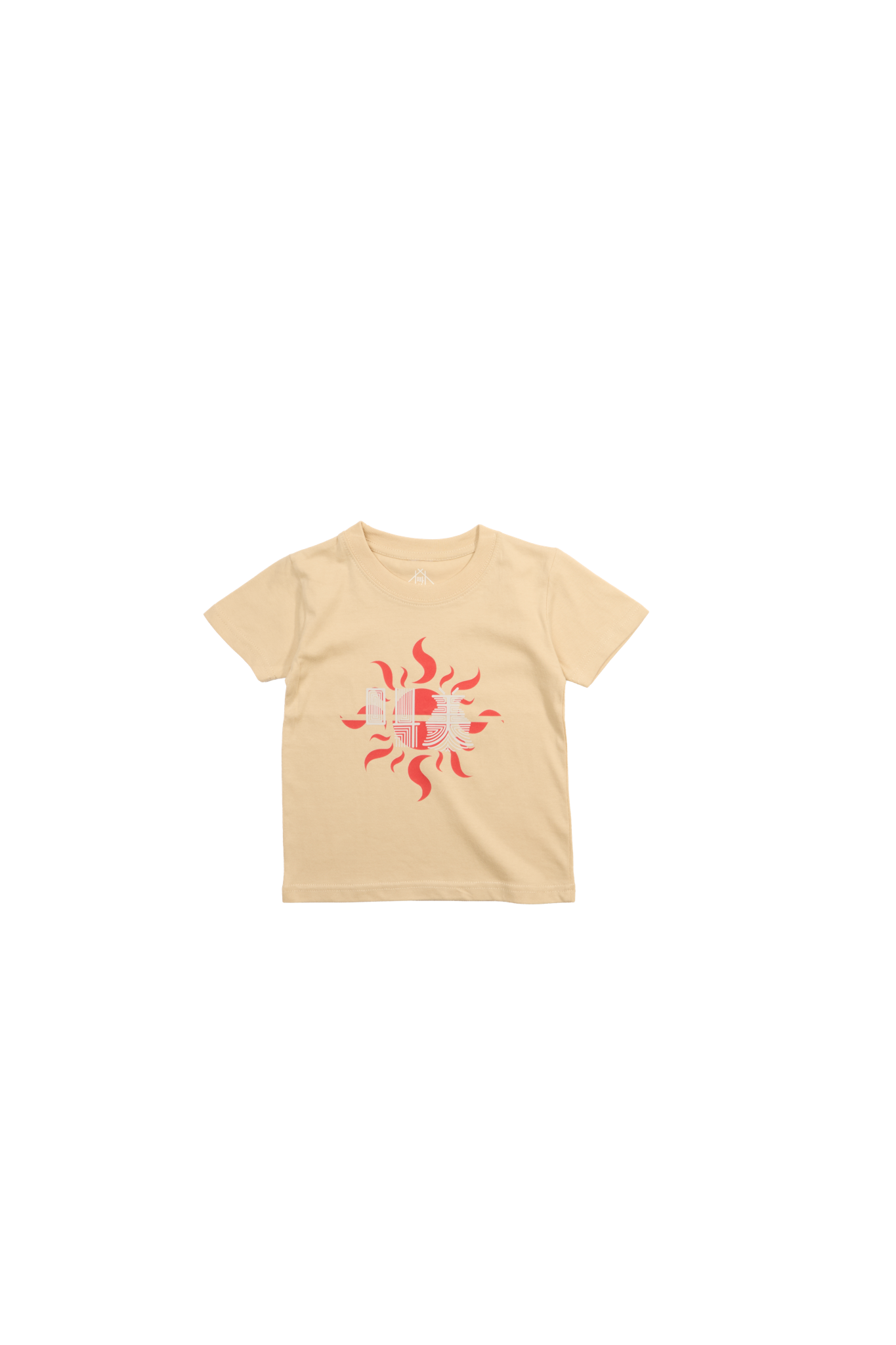 キッズTにも同じように…… いや、むしろキッズTの方が心に太陽をって願いを強く込めたかもしれません。。親子でも一緒にいられない時間は必ずあります。その時でも繋がっているよ、見守っているよ、想っているよという気持ちが伝わったらいいなとワンサイズですが発案いたしました! 是非おそろいで着てみてください。