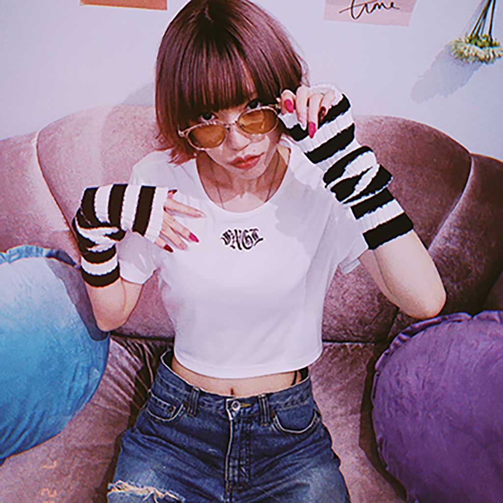 SANAGARA発 GAL'S ライン「SANAGAL」"何処へでも、いつまでも、お洒落がしたい"そんな夢を持っている女の子に様々なコンセプトのファッション・アイテムを提案。第一弾となるクロップドTeeは"曖昧"でも様々なジャンルのファッションを取り入れて欲しいという思いからシンプルにどんなコディネートにも合う「ホワイト」、いつの時代にも根強くファンがいるゴシックパンクファッションに合う「ブラック」、パステル調のトレンドカラーを取り入れた「シーフォーム」の3色展開。